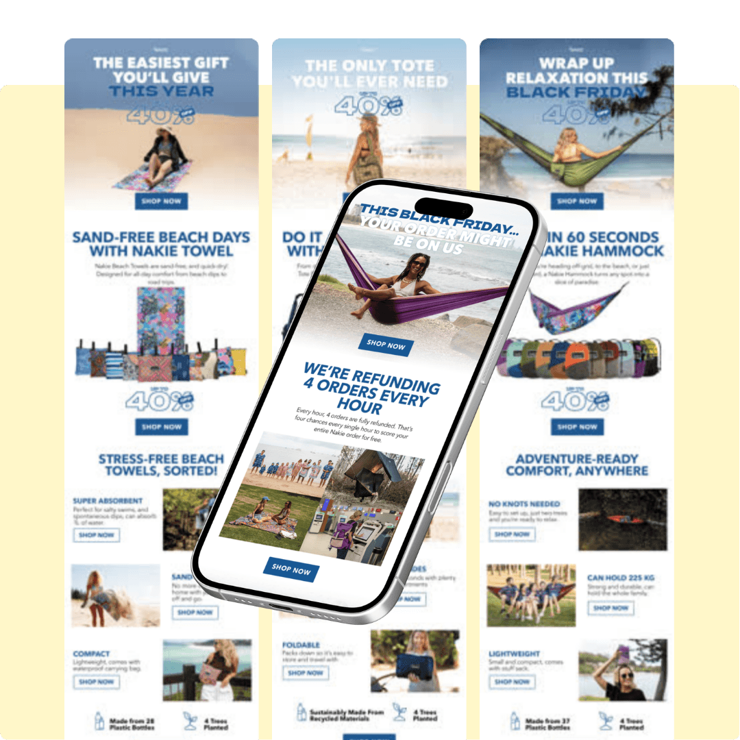 Nakie's Black Friday campaign promoted up to 40% off across their product range. The campaign required email designs that could communicate urgency and drive conversions during one...