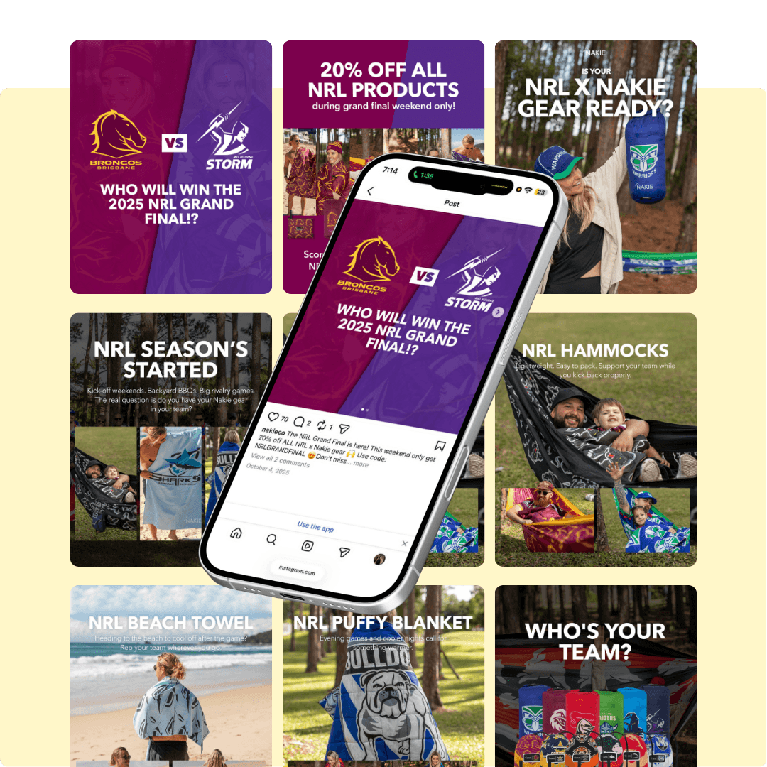 Nakie partnered with the NRL to create a limited collection tied to the rugby league season. These social media posts were created to promote the partnership...